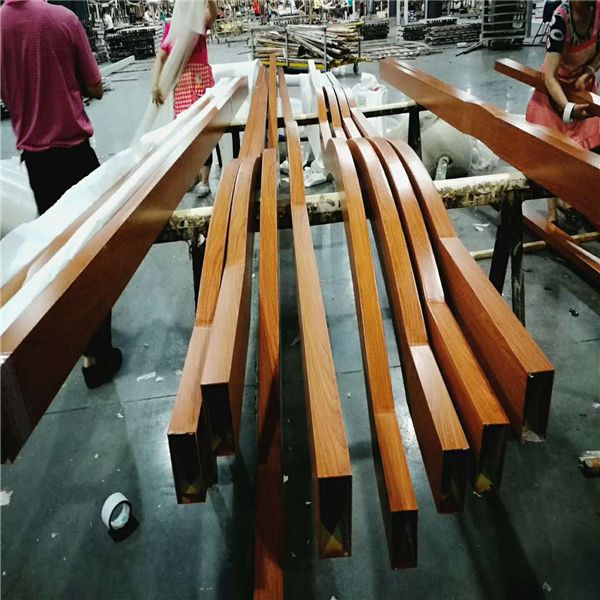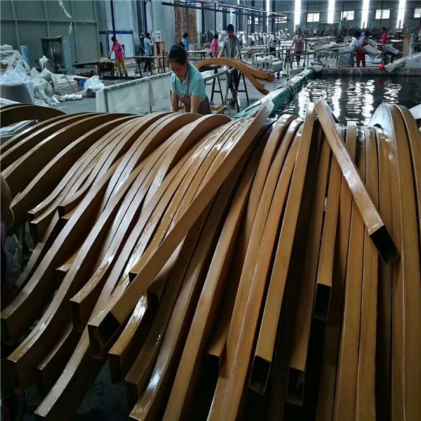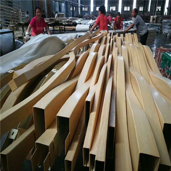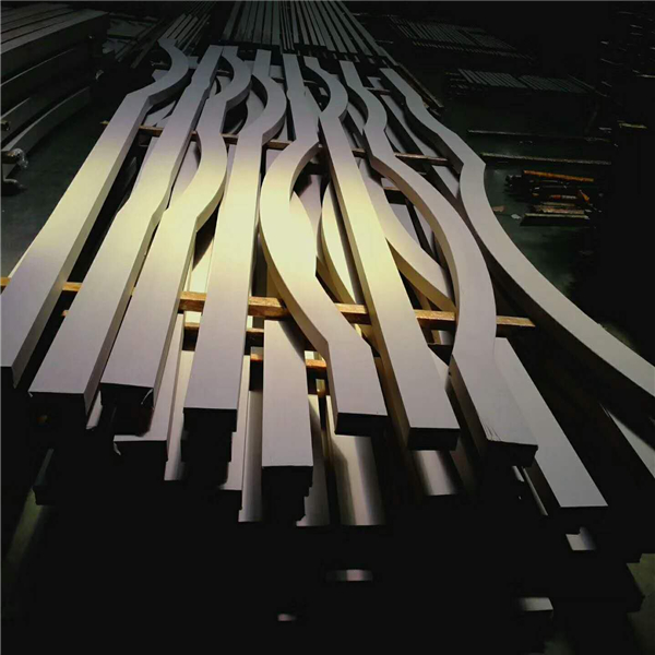 弧形/波浪形鋁方通生產(chǎn)流程(進口數(shù)控雕琢機開料-加工-打磨-水洗-德國進口噴涂線外表噴涂。