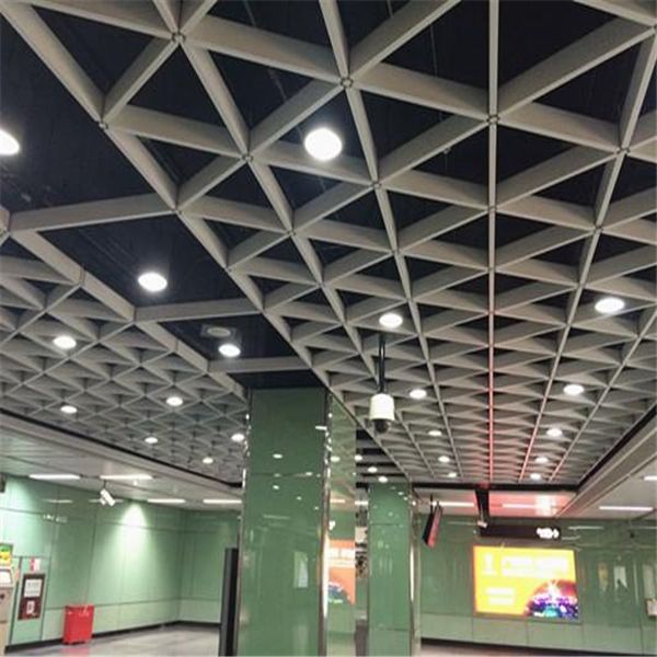 - 廣東鋁格柵廠家 西餐廳裝飾吊頂天花 u型格柵 地鐵站三角鋁格柵吊頂
