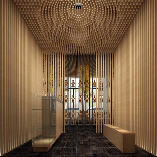 鋁圓管天花是一種裝飾性垂簾型吊頂天花。鋁圓管在于具有開闊的視野,線條飄逸,通透,層次感好,視覺效果能產(chǎn)生夢幻線條美的感覺;鋁圓管吊頂在于在材質(zhì)
